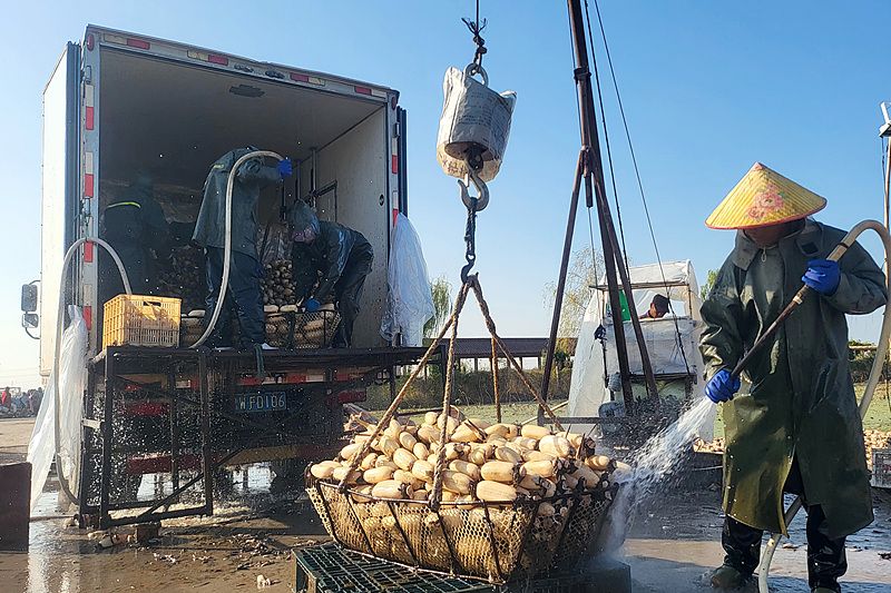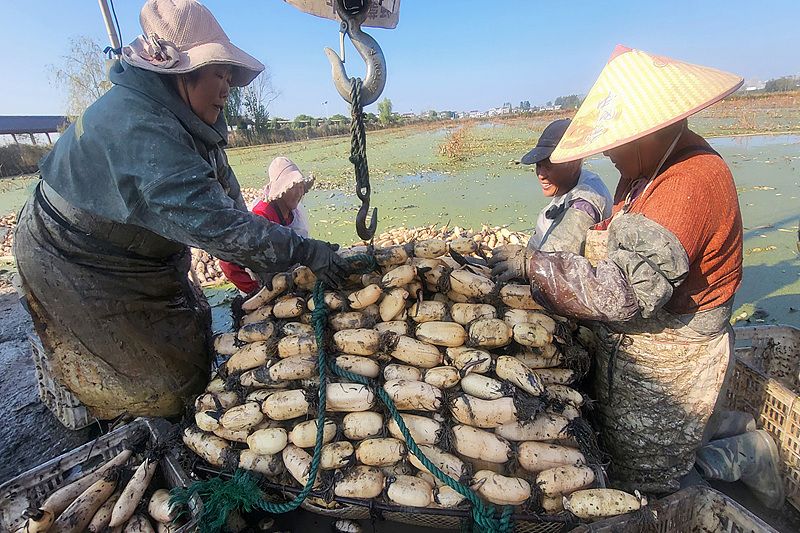 金秋时节,江苏连云港市灌云县种植的4.8万亩莲藕喜获丰收,农民紧抓农时抢收莲藕,供应市场。近年来,灌云县依托丰富的水资源环境优势,因地制宜发展莲藕产业,带动当地百姓就业增收。