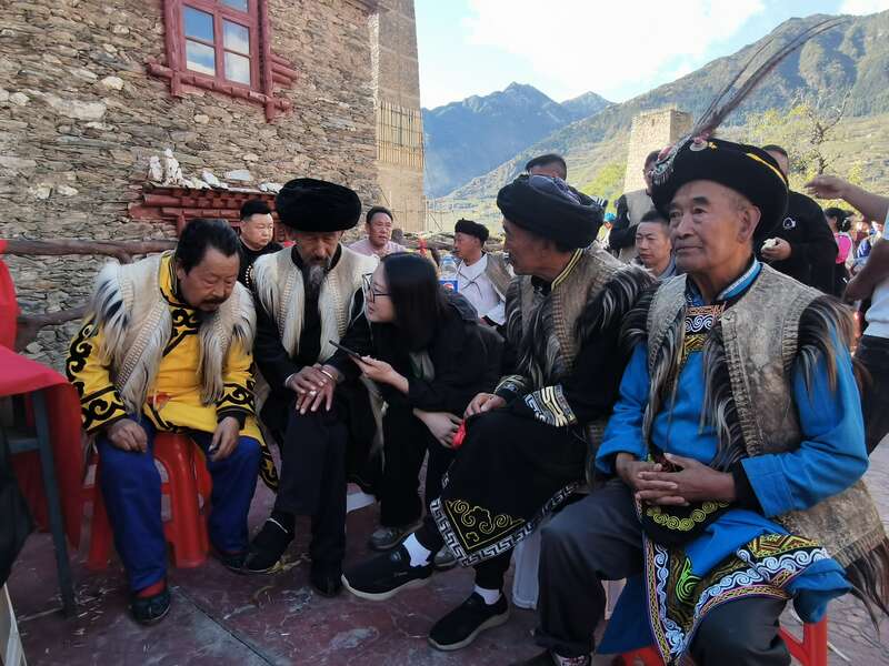 “释比”是羌族宗教仪式的执行者和通晓羌族历史与传说的说唱艺人。余有成是黑虎羌寨的“释比”传承人,掌握现有的大多数羌族诵经。为了把“释比”文化传承下去,他带了四个徒弟。“我们羌族的文化有人传承,这是我最想看到的。”