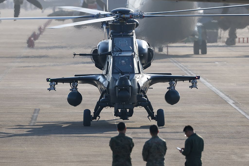 2024年11月7日,“直-20”直升机飞抵珠海国际航展中心。第十五届中国国际航空航天博览会将于11月12日至17日在珠海国际航展中心举行。 中新社记者 陈骥旻 摄