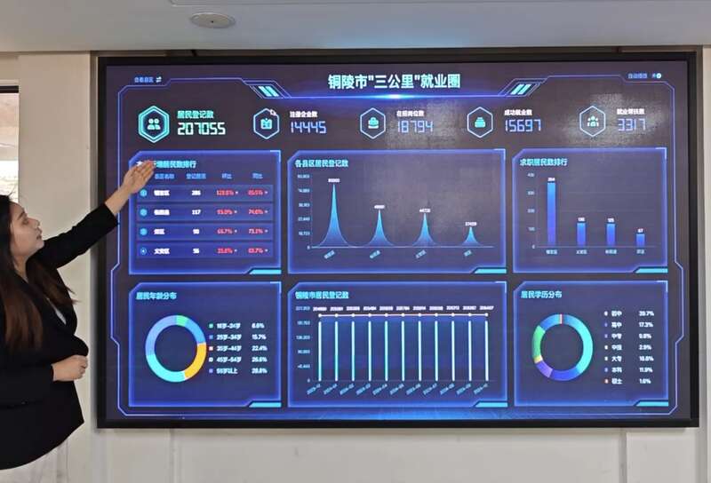 为了让就业困难人员就上业、就好业,铜陵市创新就业促进机制,推动公共就业服务下沉基层,通过服务站点“小切口”撬动就业“大民生”。同时注重数字赋能,着力打造“三公里”就业圈,让那些不想离家、难以离家的居民,在家门口就能找到好工作。