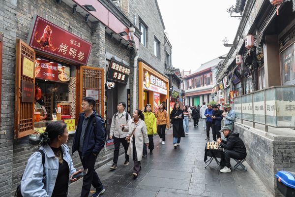 2024年11月11日,北京,烟袋斜街迎来大批游客观光打卡,这处中国历史文化名街位于北京市西城区什刹海核心保护区内,全长232米,是北京最古老的胡同之一,展现着老北京的历史文化。