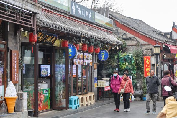 2024年11月11日,北京,烟袋斜街迎来大批游客观光打卡,这处中国历史文化名街位于北京市西城区什刹海核心保护区内,全长232米,是北京最古老的胡同之一,展现着老北京的历史文化。图为一家南门涮肉餐馆。