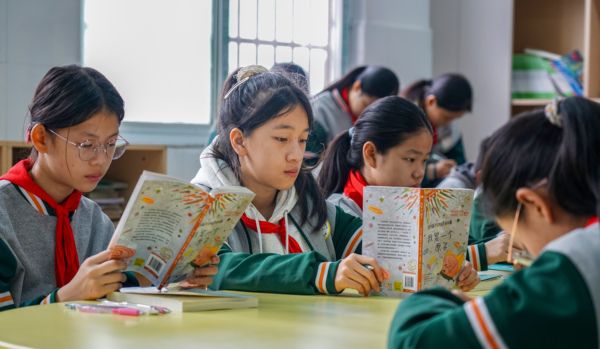 2024年11月14日,江苏省宿迁市,泗洪县洪桥学校六(7)班学生正在上90分钟沉浸式阅读课。据悉,该校为进一步深化“阅读+”工程育人成果,从小学二年级开始,每周开设一节90分钟沉浸式阅读课,激发学生“多读书、乐读书、会读书、读好书”的阅读兴趣,提升学生阅读能力。