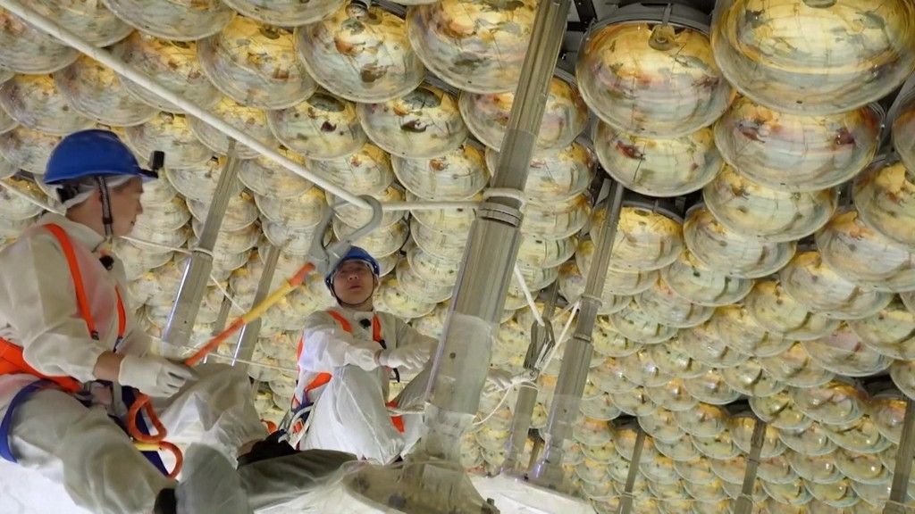 2024年11月20日,广东江门中微子实验探测器主体建成。