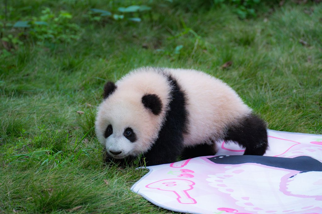 2024年11月23日,重庆动物园,大熊猫幼崽“奇三妹”在玩耍。