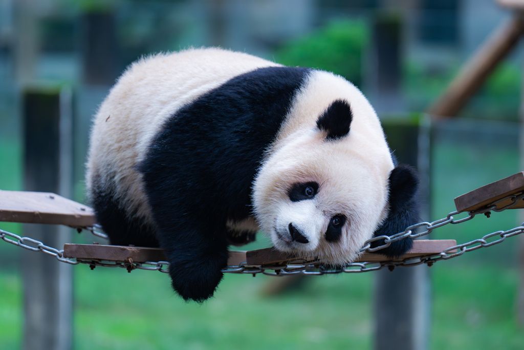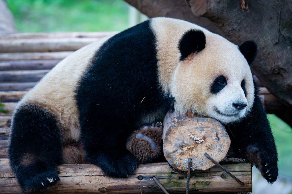 2024年11月23日,重庆动物园,大熊猫“渝爱”在玩耍。