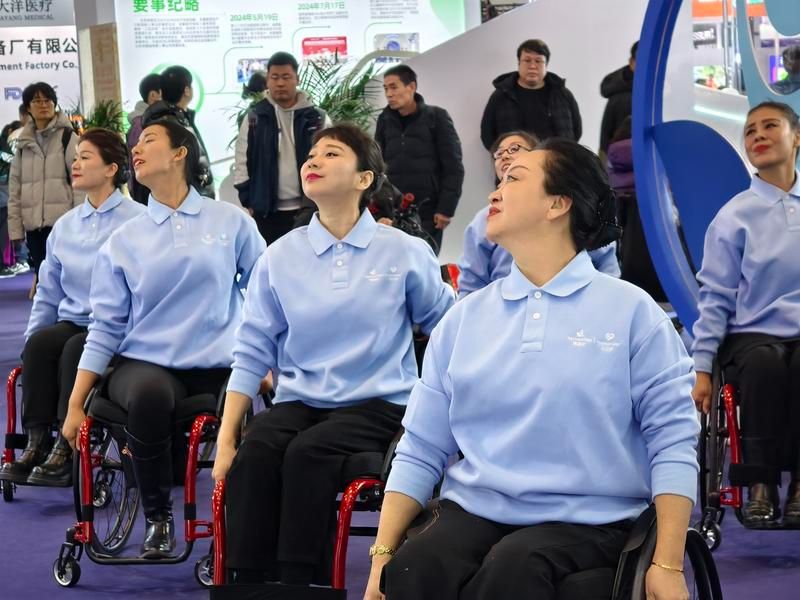 11月29日,在瑞海胜展区前,来自北京心之源轮椅舞蹈队的队员们表演了舞蹈《时代感》,微笑、挥手、摇摆、舞动……这支坐在轮椅上的队伍向观众展现出自信的风貌。
