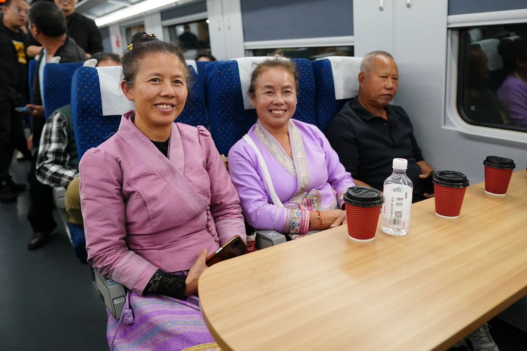 2024年12月3日,中老铁路开通运营三周年。这条铁路北起中国昆明,南至老挝万象,全长1035公里。三年来,中老铁路累计发送旅客超4300万人次、运输货物4830万吨,为促进区域互联互通和沿线经济发展作出重要贡献,已成为中国与南亚东南亚经贸合作的重要桥梁。图为12月2日,云南普洱,当地民众乘车出行,中老铁路开通后,成为了沿线民众出行、旅游、求学、经商及文化交流的首选。 中新社记者 刘冉阳 摄