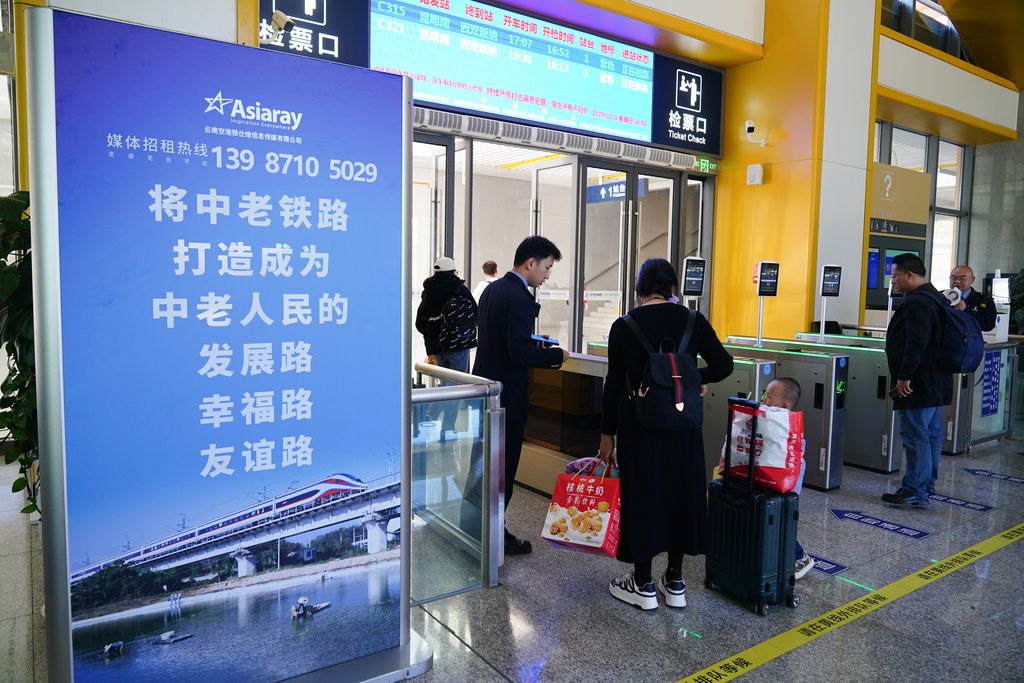 2024年12月3日,中老铁路开通运营三周年。这条铁路北起中国昆明,南至老挝万象,全长1035公里。三年来,中老铁路累计发送旅客超4300万人次、运输货物4830万吨,为促进区域互联互通和沿线经济发展作出重要贡献,已成为中国与南亚东南亚经贸合作的重要桥梁。图为12月1日,云南玉溪,旅客在中老铁路化念站乘车。 中新社记者 刘冉阳 摄