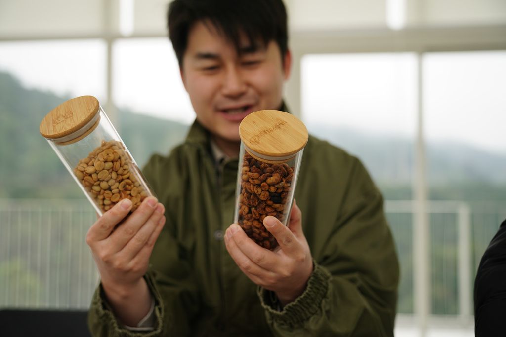 2024年12月3日,中老铁路开通运营三周年。这条铁路北起中国昆明,南至老挝万象,全长1035公里。三年来,中老铁路累计发送旅客超4300万人次、运输货物4830万吨,为促进区域互联互通和沿线经济发展作出重要贡献,已成为中国与南亚东南亚经贸合作的重要桥梁。图为12月2日,云南普洱,游客在普洱野鸭塘河谷庄园了解展示的咖啡豆,中老铁路开通后,普洱“咖旅”新产业随之兴起。 中新社记者 刘冉阳 摄