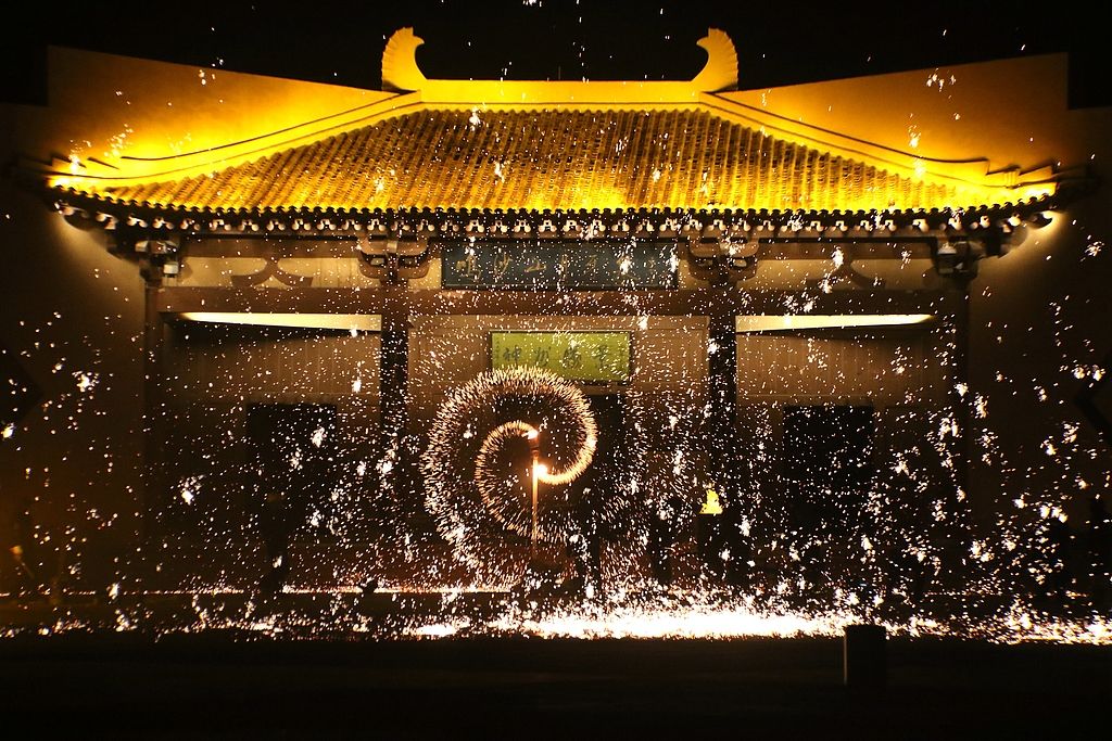 2024年12月23日晚,甘肃省敦煌市在鸣沙山月牙泉景区山门广场举办打铁花、抖火壶等传统非遗民俗项目表演,“火树银花”喜迎新春,让游客感受敦煌文化的独特魅力,进一步丰富冬春季旅游市场供给,激发冬春旅游市场活力。