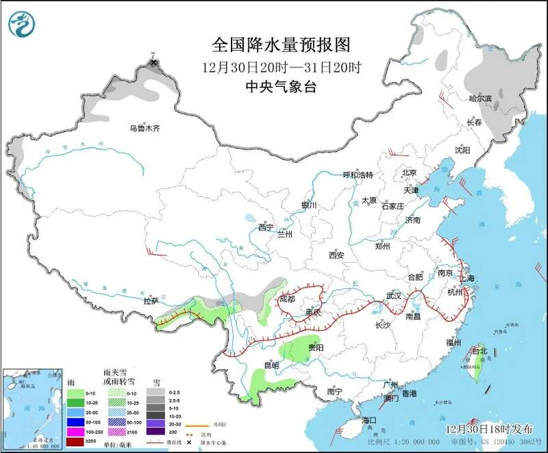 黑龙江中东部、吉林东部、内蒙古东北部、新疆北部和南疆西部山区、川西高原等地部分地区有小雪或雨夹雪,其中,新疆阿勒泰、塔城等地部分地区有中到大雪。西藏东南部、四川盆地东部、贵州中西部、云南南部和东北部、台湾岛东部等地部分地区有小雨。