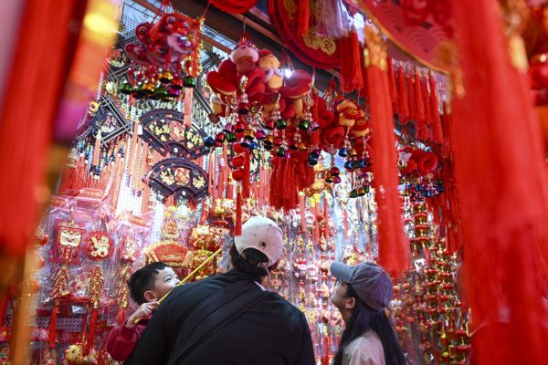 2025年1月7日,广东广州,随着春节的临近,市民开始选购节日饰品。 中新社记者 陈骥旻 摄