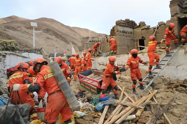 2025年1月7日,西藏森林消防总队的救援人员正在搜救。