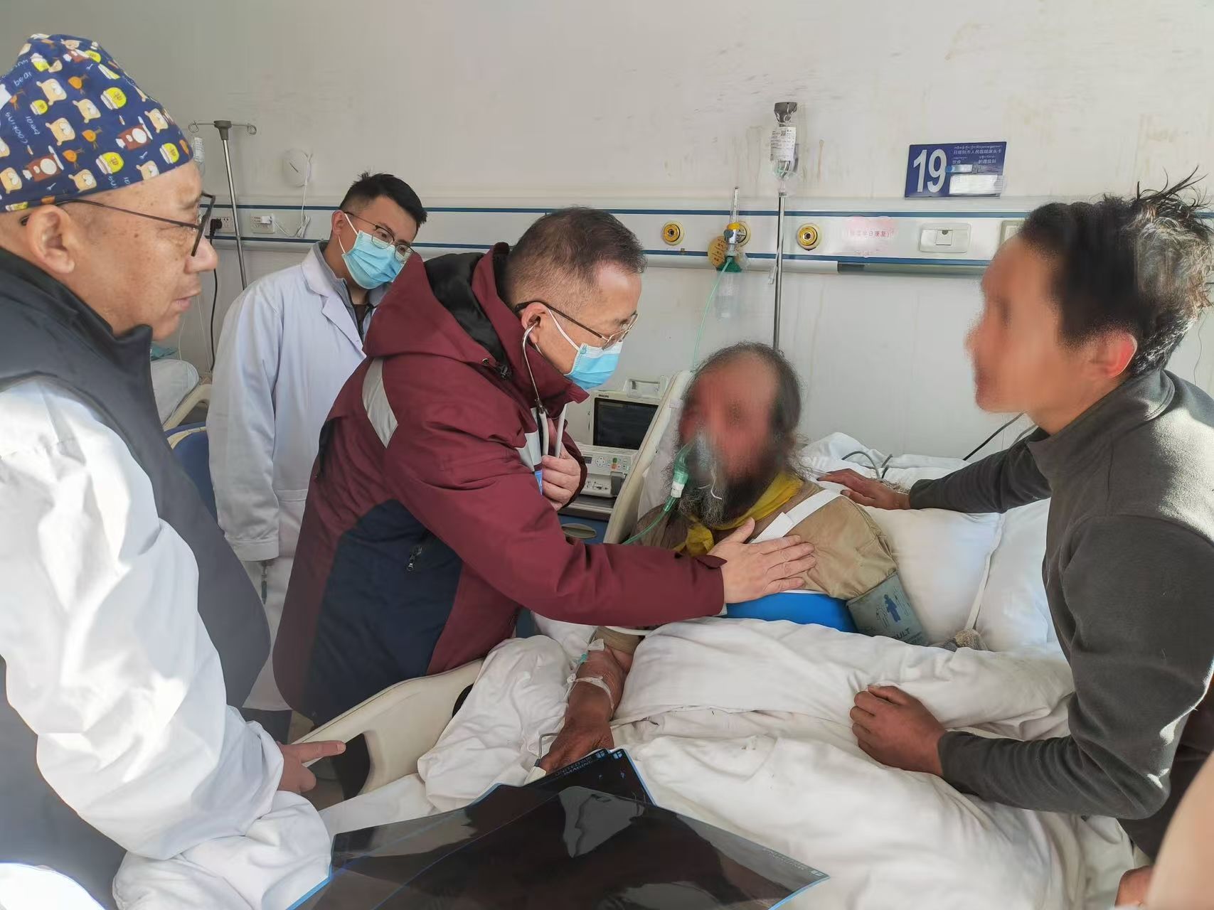 1月7日晚抵达日喀则后,华西医院紧急医学救援队专家组与日喀则市人民医院的医护人员齐心协力救治伤员。