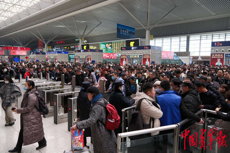 1月13日,铁路郑州东站候车大厅人流密集。中青报·中青网记者 田嘉硕/摄