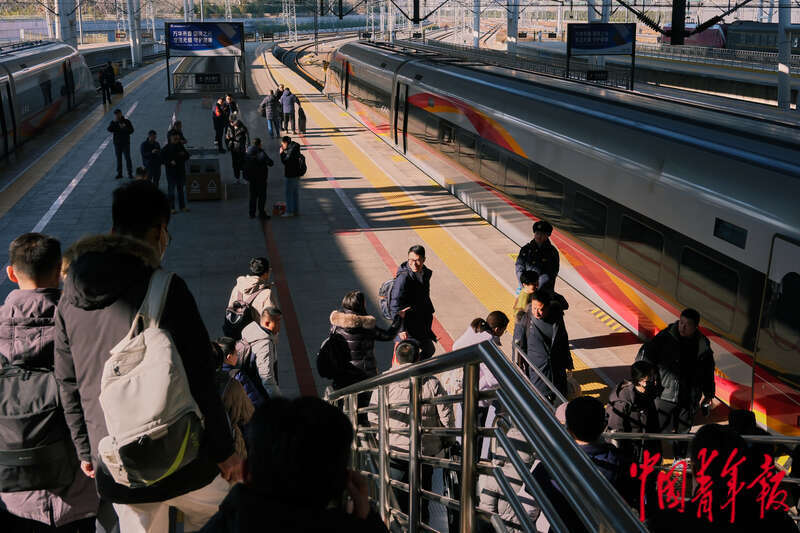 1月13日,铁路北京西站,准备登车的旅客。中青报·中青网记者 田嘉硕/摄