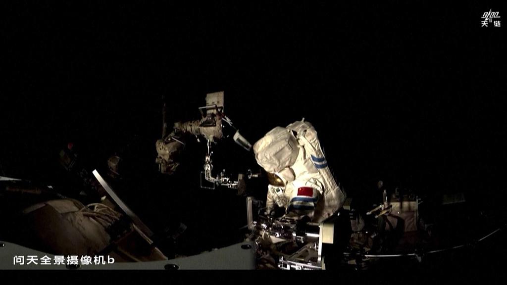 2025年1月21日1时12分,经过约8.5小时的出舱活动,神舟十九号乘组航天员蔡旭哲、宋令东、王浩泽密切协同,在空间站机械臂和地面科研人员的配合支持下,完成了空间站空间碎片防护装置安装、舱外设备设施巡检等任务。出舱航天员蔡旭哲、宋令东已安全返回问天实验舱,出舱活动取得圆满成功。(中国载人航天工程办公室)