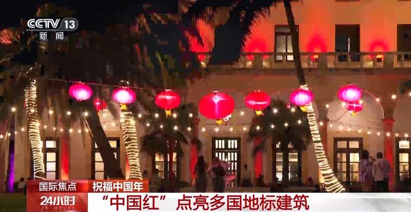 为庆祝中国蛇年春节,1月28日,在美国、古巴、澳大利亚多地的地标性建筑都举行了“中国红”亮灯仪式,绚丽耀眼的“中国红”点亮夜空,增添了欢乐喜庆的节日气氛。
