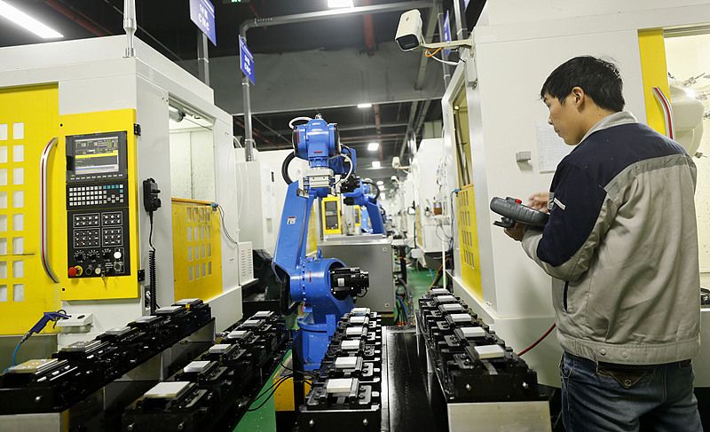 2025年2月20日,在江西省吉安市泰和高新区数字产业园内,吉安法拉制造智能科技有限公司数字化车间技术人员正在给智能机械手臂编程。