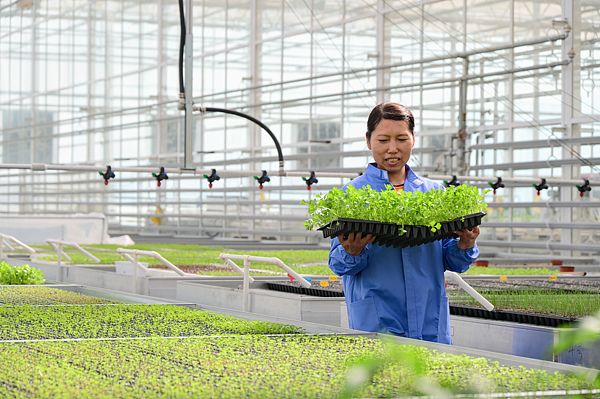 新疆昌吉州:农民未来农业科技馆内管理蔬菜