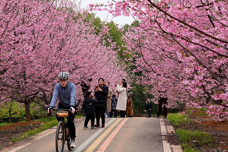 浙江金华:绿道变身“樱花大道” 市民踏青赏春日风光
