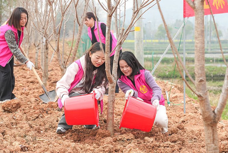 2025年3月11日,各地志愿者共同植树,以实际行动践行绿色发展理念。