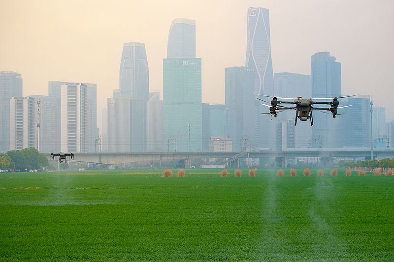 杭州:科技赋能春耕 无人机追肥“麦田CBD”