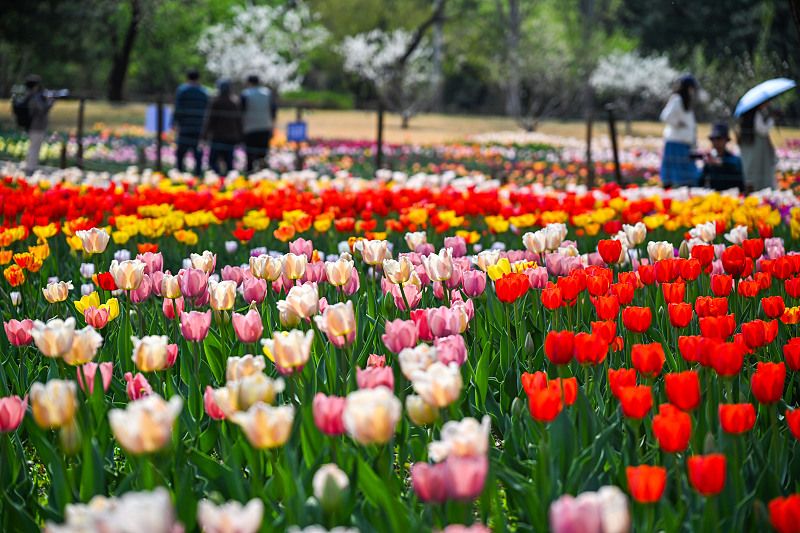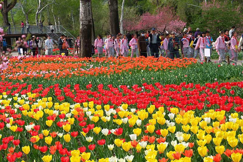 2025年4月8日,北京,国家植物园20万株郁金香已经部分开放,不少市民游客前来参观,预计4月中旬将进入到郁金香最佳观赏期。