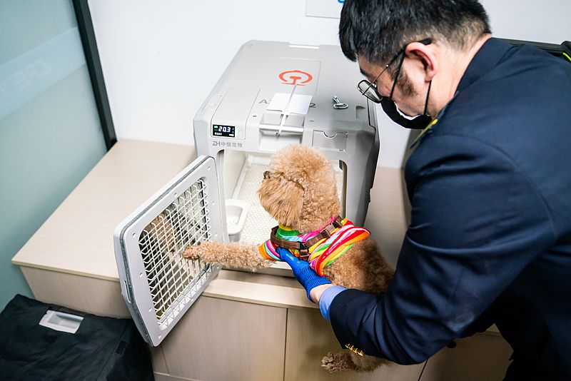 2025年4月10日,北京,两只宠物犬和一只宠物猫成为高铁托运宠物试点服务的首批“乘客”。
