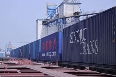 4月16日,北京铁路物流中心琉璃河营业网点专用线集装箱已装载完毕的中欧班列。陈思阳/摄