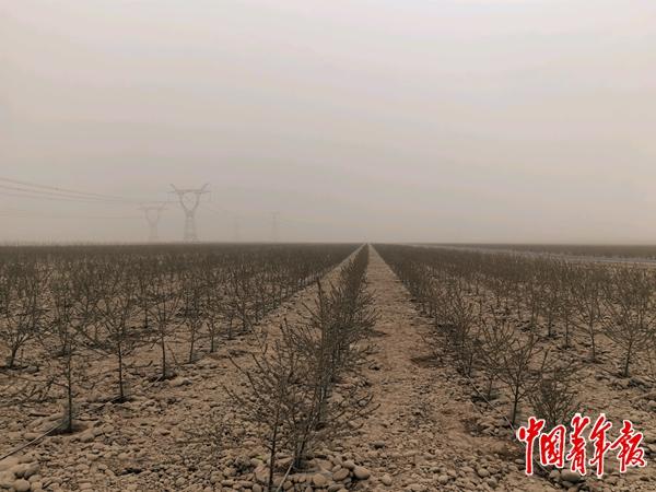 在这里,杏树的根系找不到足够的水分,桃树的枝叶经不起风沙的抽打,唯有耐旱的沙棘,能在这种极端环境中扎根。