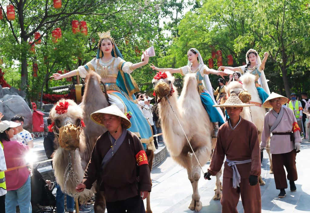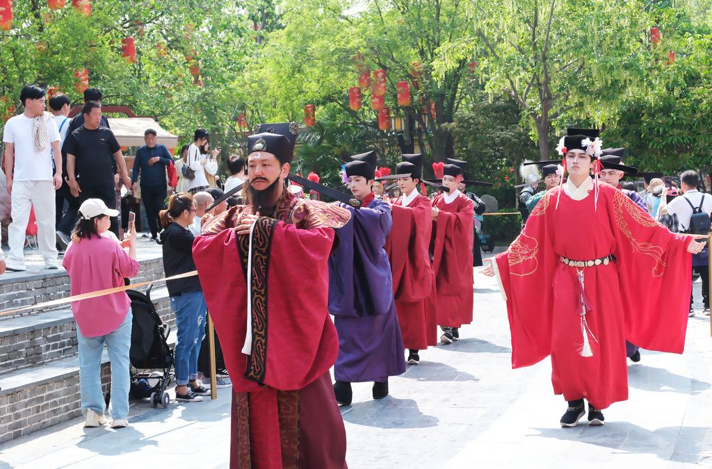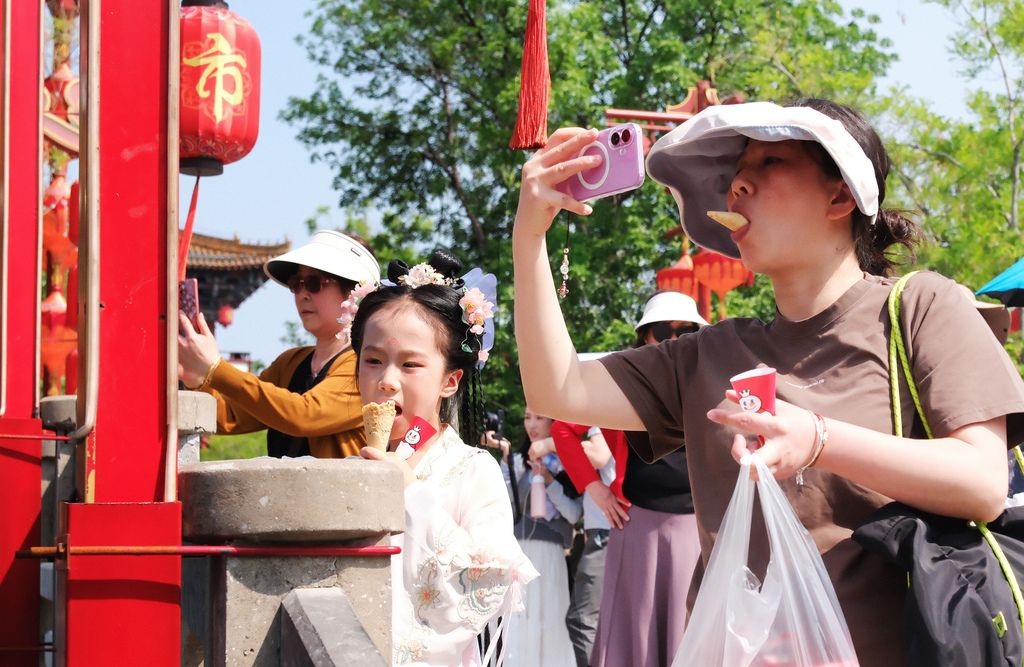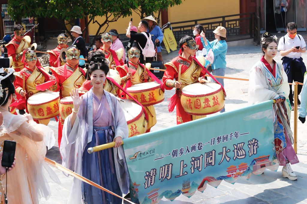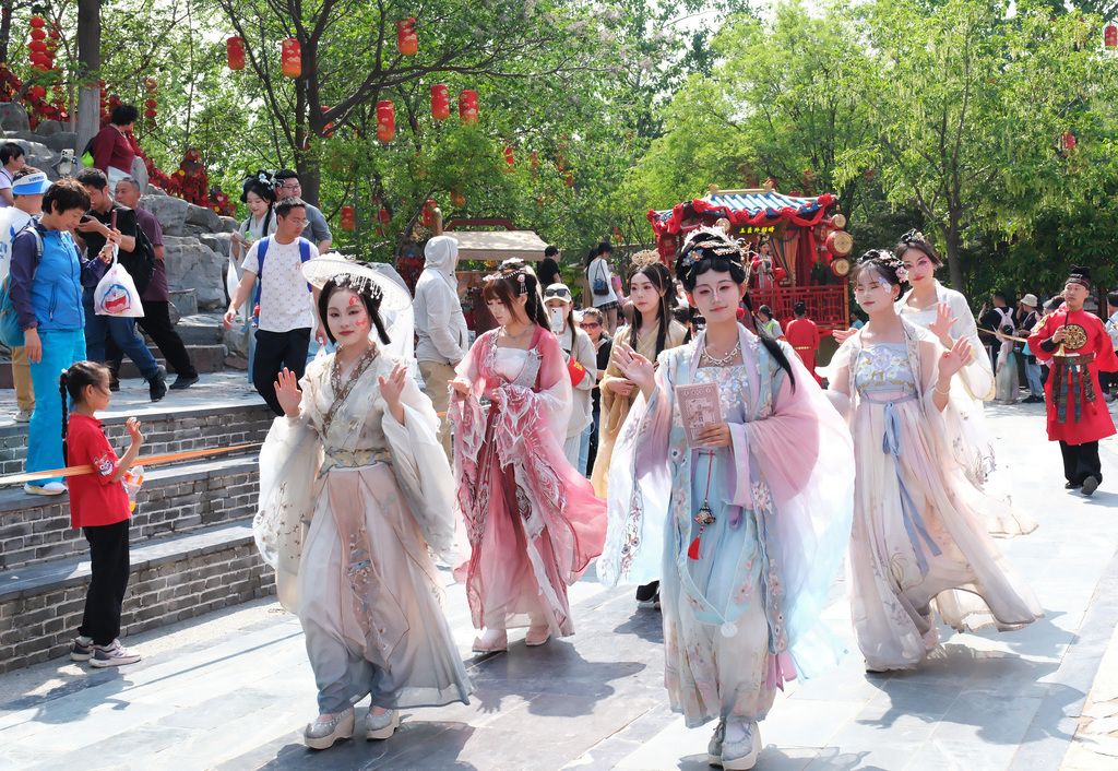 2025年4月20日,随着“五一假期”临近,河南省开封市清明上河园迎来众多“错峰游”的周末市民及各地游客。