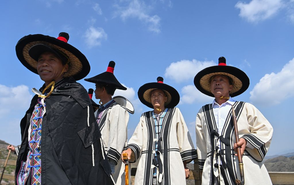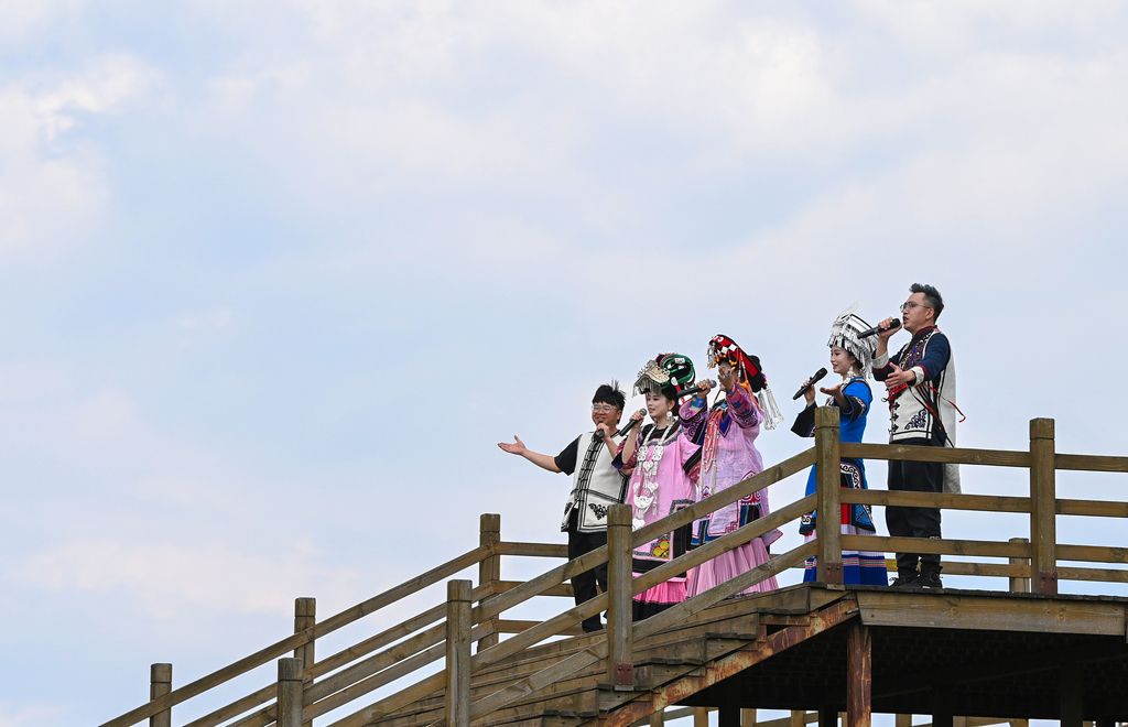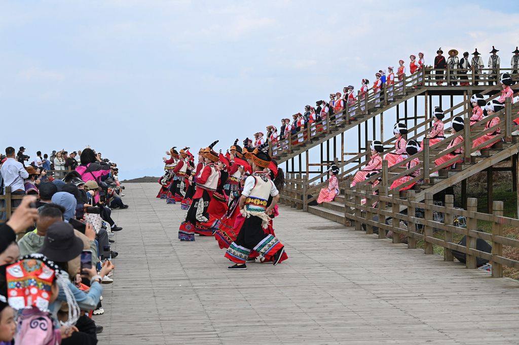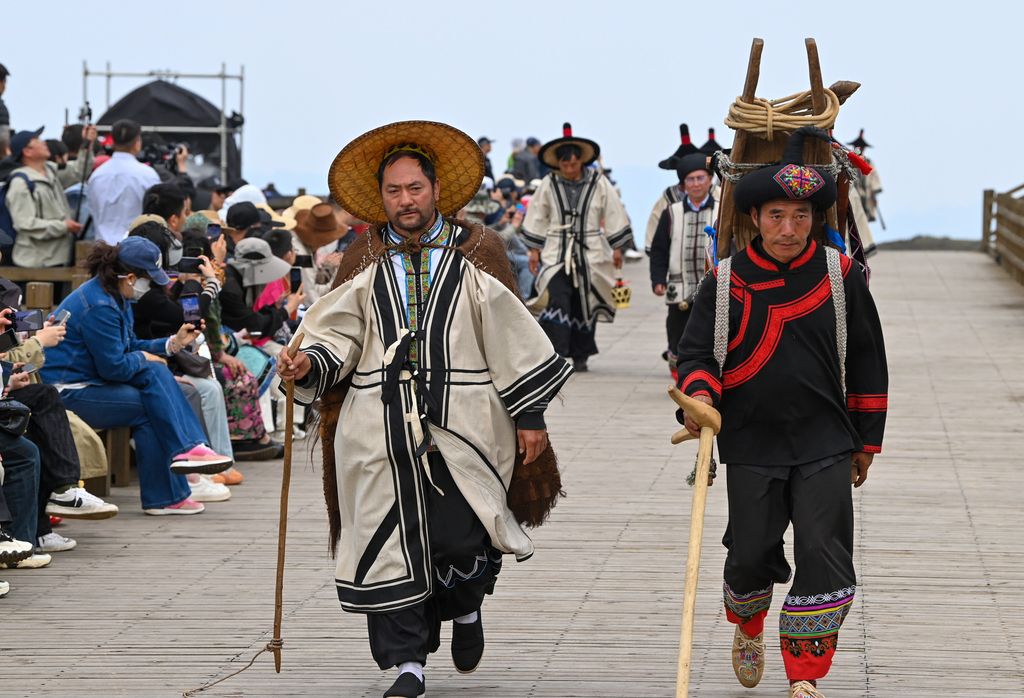 2025年4月20日,贵州省六盘水市,盘州市乌蒙大草原景区,身着少数民族服装的群众在“乌蒙村秀”活动中走秀。