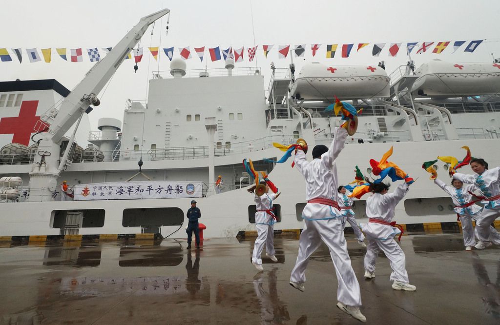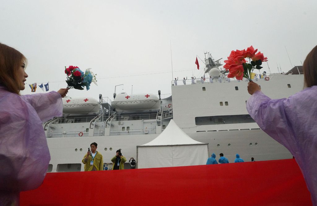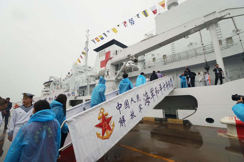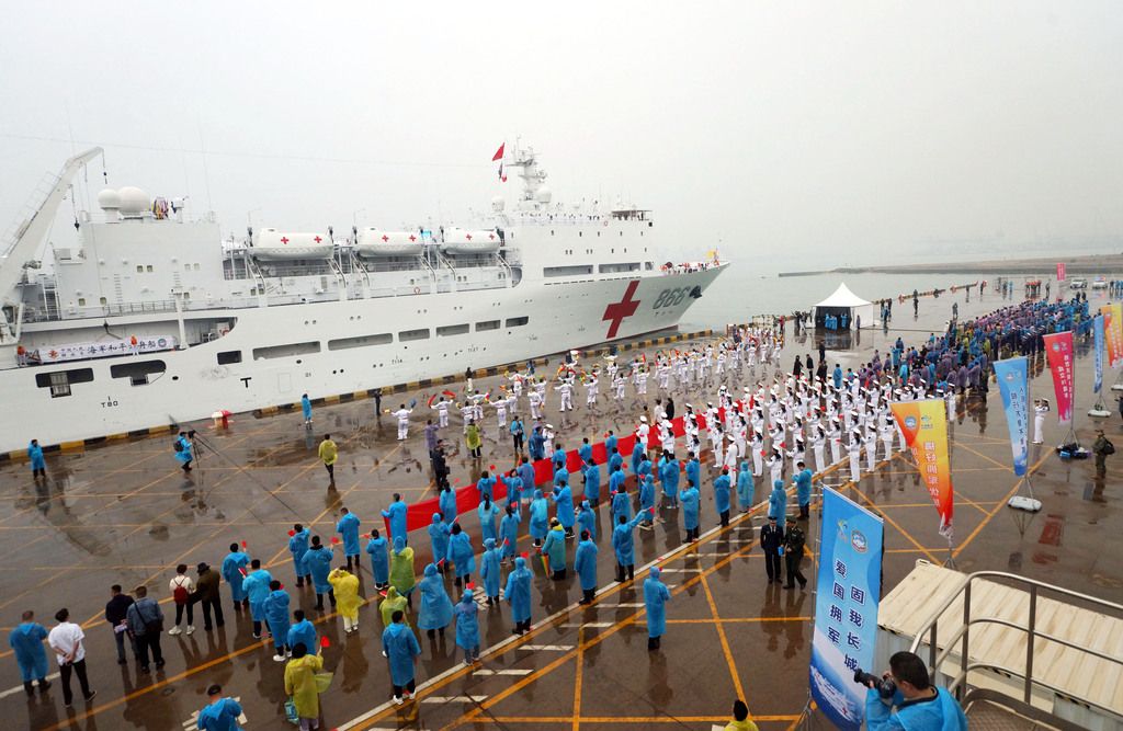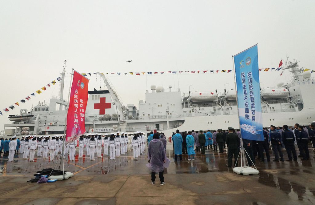 2025年4月21日,天津,停靠在码头的海军“和平方舟号”医院船。当日,该船参加人民海军成立76周年纪念活动,并受到天津各界的热烈欢迎。4月21日至4月25日,“和平方舟号”医院船将在天津开展一系列“城舰共建”活动。