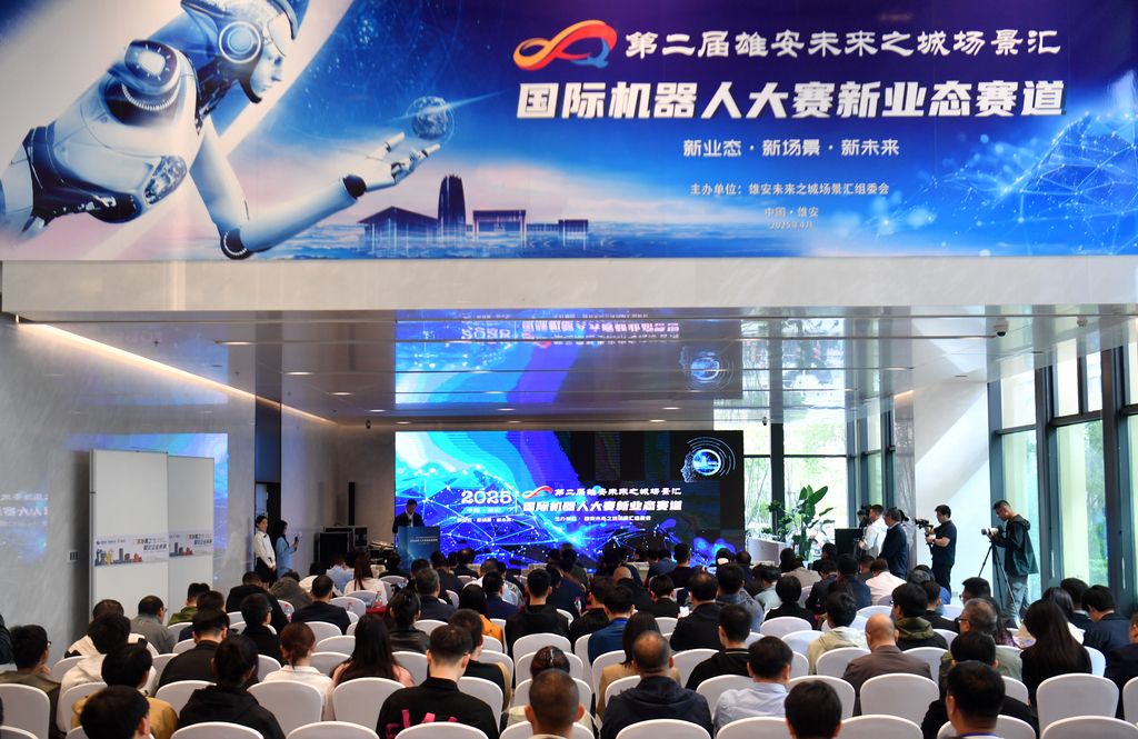 2025年4月23日,第二届雄安未来之城场景汇国际机器人大赛新业态赛道预赛在雄安新区举办,赛事吸引海内外70余家科技领军企业及顶尖高校团队同台竞技。 中新社记者 韩冰 摄