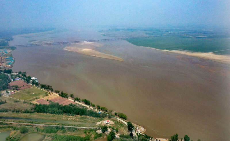在黄河郑州荥阳段,黄河自西向东奔流而去,南水北调中线工程遇黄入地穿行,渠水从对岸的焦作温县喷涌而出。