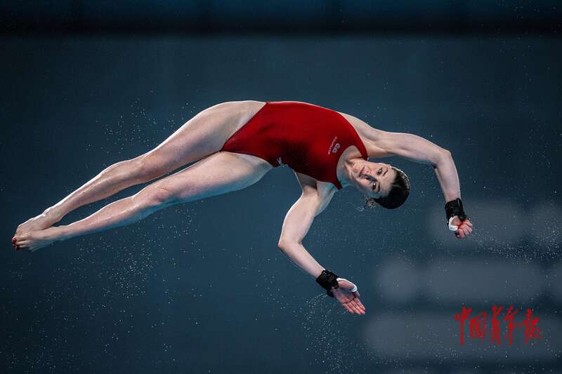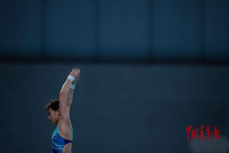 5月4日,北京,2025年世界泳联跳水世界杯总决赛,中国队陈艺文在女子3米板比赛中。中青报·中青网记者 李隽辉/摄