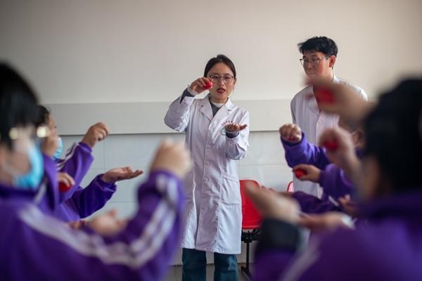 5月8日,精神科病房组织音乐治疗项目,医生带领患者在小游戏中熟悉要使用的道具。
