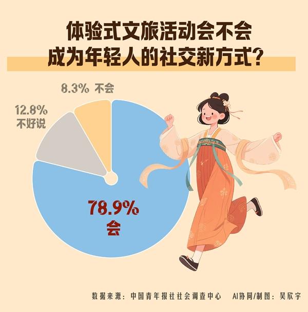 调查中,78.9%的受访青年认为体验式文旅活动会成为年轻人的社交新方式。
