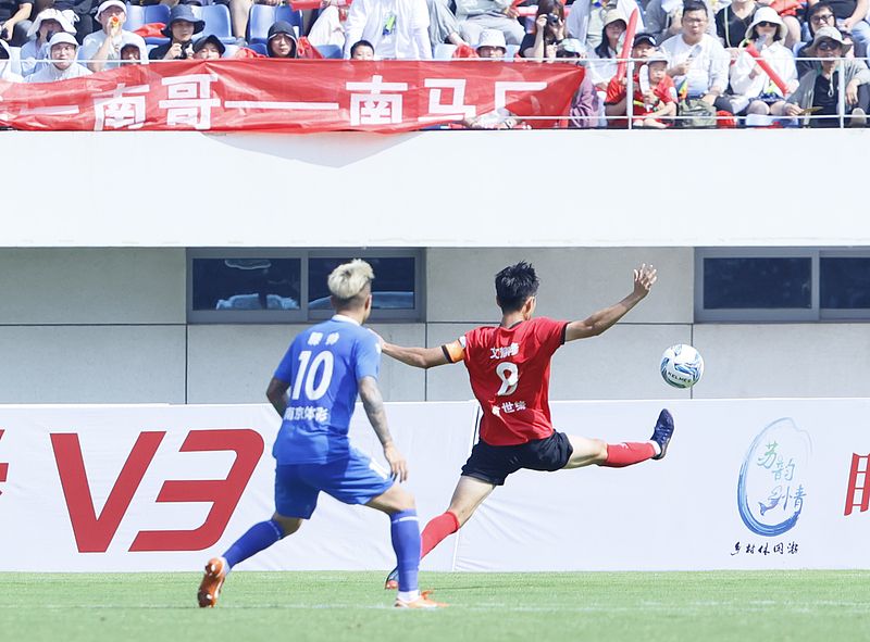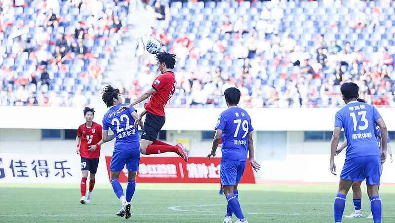 2025年6月14日,南京队员和淮安队员在比赛中拼抢。