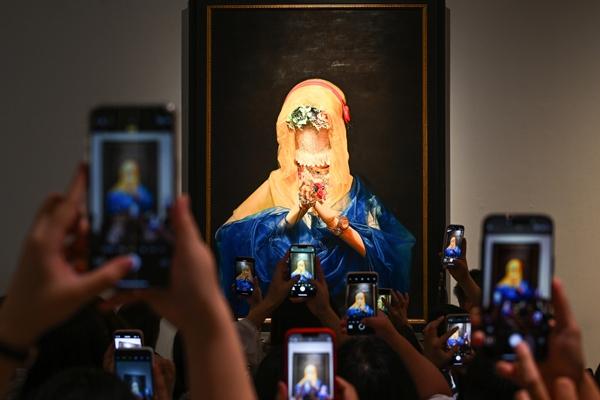 6月12日,重庆,市民在四川美术学院美术馆观赏油画作品《祷》。近日,四川美术学院2025年本科生毕业作品展正在该校美术馆举行。展览中,一幅名为《祷》的油画作品凭借其独特的艺术表现力走红网络,吸引不少市民、游客前来观赏。视觉中国供图