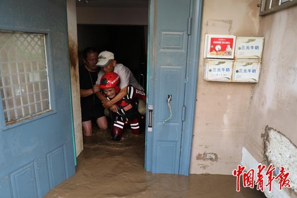 太师屯镇党委宣传委员李春雨告诉记者,7月26日密云区升级发布暴雨红色预警信号前,该镇已按照“应转尽转”的要求将部分老百姓转移至安全地带。随着7月27日下午密云水库启动泄洪以及夜晚暴雨,洪水漫过清水河河堤,波及镇中心街附近居民,镇里紧急联系消防等力量转移受灾居民。