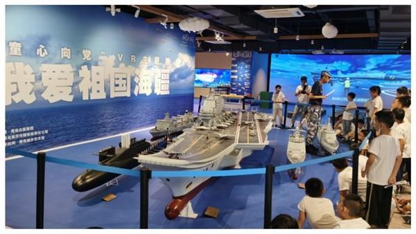 “我爱祖国海疆”VR主题实践通过“了不起的中国海军”专题展览、“大国重器 逐梦深蓝”真模展示、蛟龙号大揭秘、VR沉浸式课程、退役舰长讲述“红色血脉、蓝色国土”故事以及丰富的互动实践课程,让孩子们通过先进的科技手段,第一视角感受中国海军发展历程,了解国防科技知识。