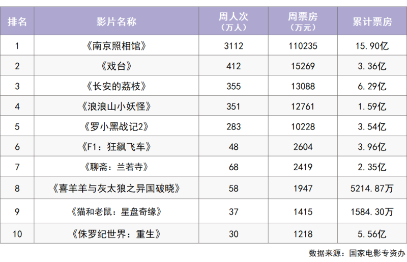 周榜方面,陈佩斯主演的《戏台》和大鹏执导的《长安的荔枝》分列周榜第二、第三位,周票房分别为1.52亿和1.30亿。两部国产动画《罗小黑战记2》与《浪浪山小妖怪》同样赢得观众广泛赞誉。此外,《聊斋:兰若寺》《喜羊羊与灰太狼之异国破晓》以及新近上映的《猫和老鼠:星盘奇缘》,使动画电影在质量和数量上双双发力,为家庭观影提供了丰富选择。