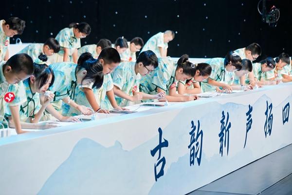 8月7日,浙江宁波,2025“出口成章·诗词少年”总展演现场,少年们专注作答。主办方供图