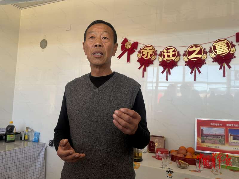 在村民任满兵的新家,窗户上贴着“乔迁之喜”剪纸。屋里暖意融融,一台崭新的电暖炉上烧着热水。“不止是家里宽敞亮堂,村里现在一点土也没有,建设得像是‘小北京’,真是安居乐业,今年冬天绝对是暖冬!”任满兵举着新旧房屋的对比图激动地感慨。