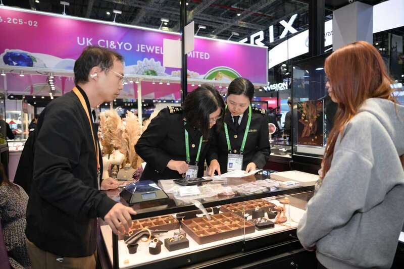 第八届进博会期间,有意向客户拟现场购买古斓国际贸易有限公司展陈的泰国进口红宝石展品。龙吴海关了解这一情况后,针对这批红宝石“体积小、鉴定难、价值高”的特点,量身定制监管方案。通过协助企业应用“珠宝溯源管理系统”,结合担保管理,确保1100余颗红宝石走通“保税展示交易”业务流程,帮助企业拓展市场。