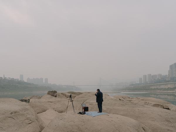 在他的影像里,长江总在枯水期,江面起了一层浅雾,看不清长江从哪里来,也说不清流向哪里,与辽阔的“江”相比,它更像具体的“河”,他给自己的摄影集取名“长河”。