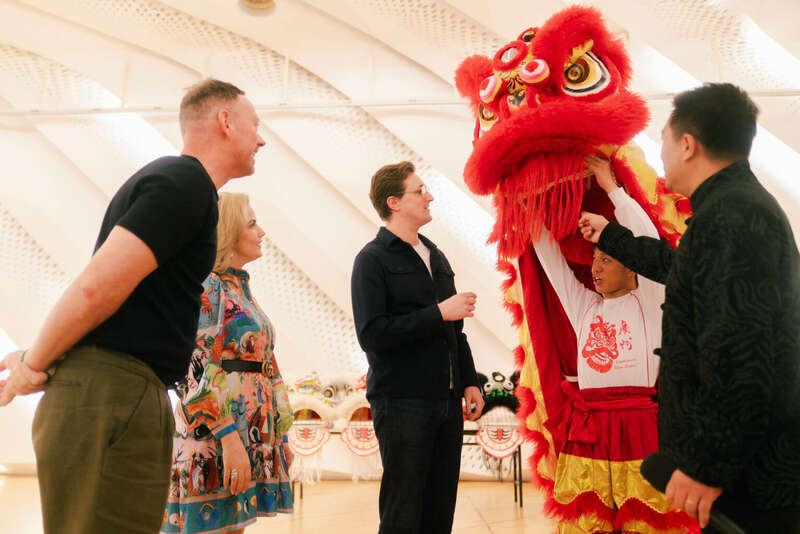 与此同时,音乐剧《剧院魅影》驻团导演本杰明·奥斯本、“魅影”的饰演者塞缪尔·温-莫里斯及“卡洛塔”的饰演者拉克尔·苏亚雷斯·格伦,与广东醒狮国家级传承人赵伟斌及音乐剧《雄狮少年》主演陈科铭一道,开启一场跨越中外的色彩美学对话。
